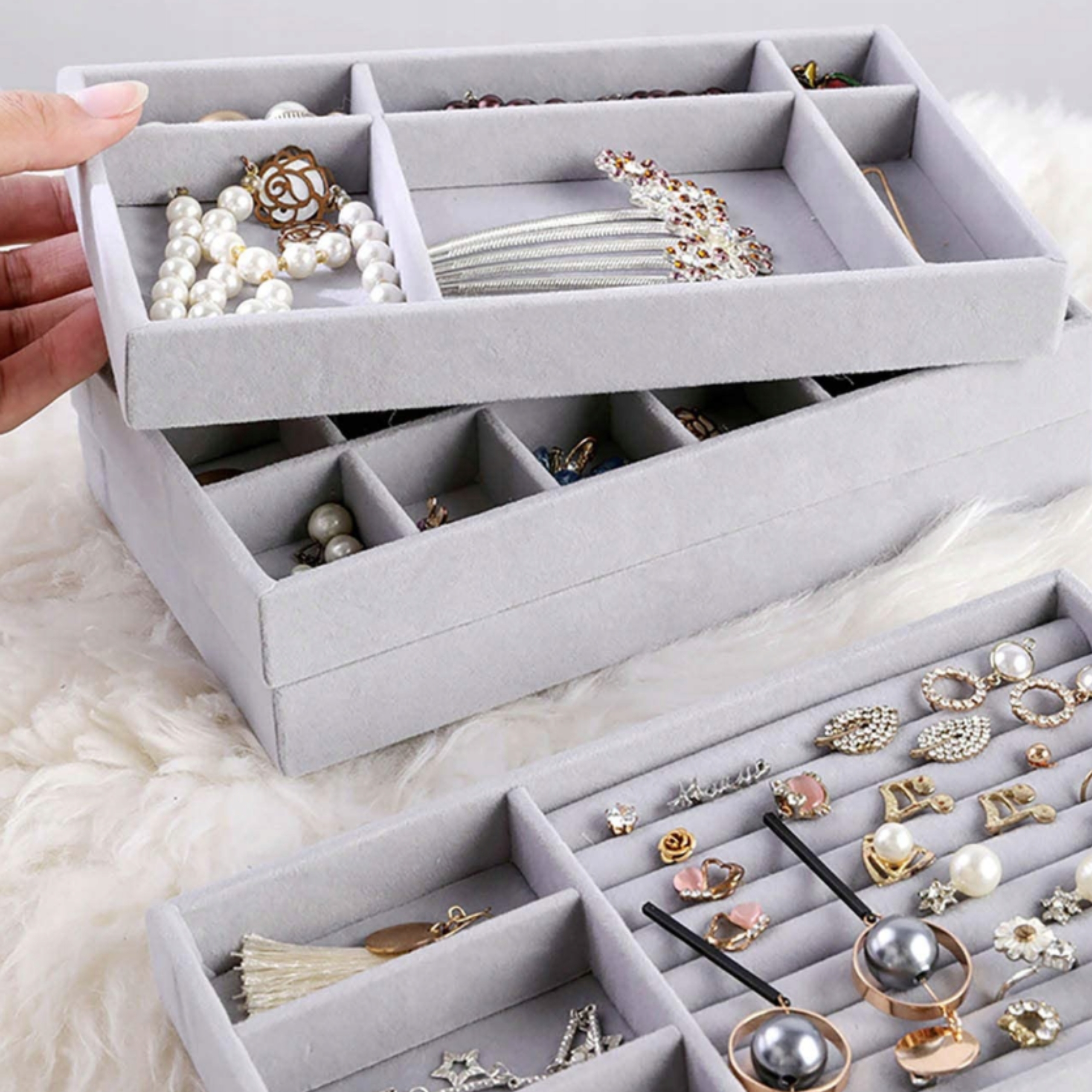 Organizer na Biżuterię wkładka do szuflady Szary